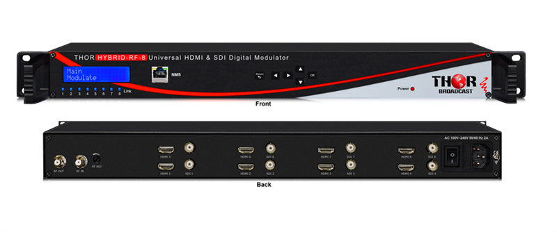 Thor 8 HDMI Digital RF Modulator is an all-in-one device integrating MPEG2 encoding and modulating to convert audio video signals into DVB-C DIGITAL QAM, ATSC, DVB-T or ISDB-T RF